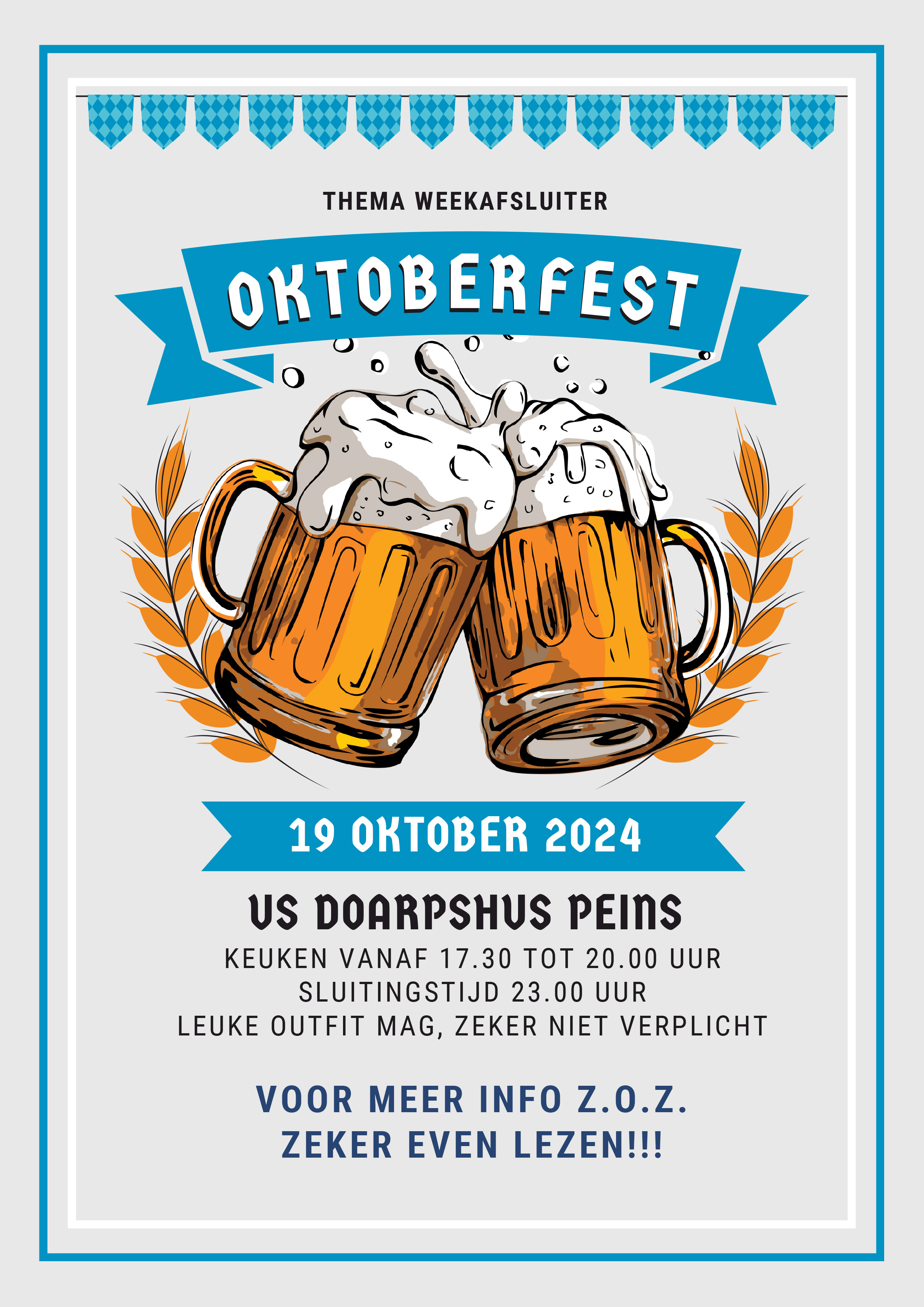 Jawel! Een echt Oktoberfest in ons Dorpshuis, het is natuurlijk leuk als je verkleed komt (niet verplicht natuurlijk).