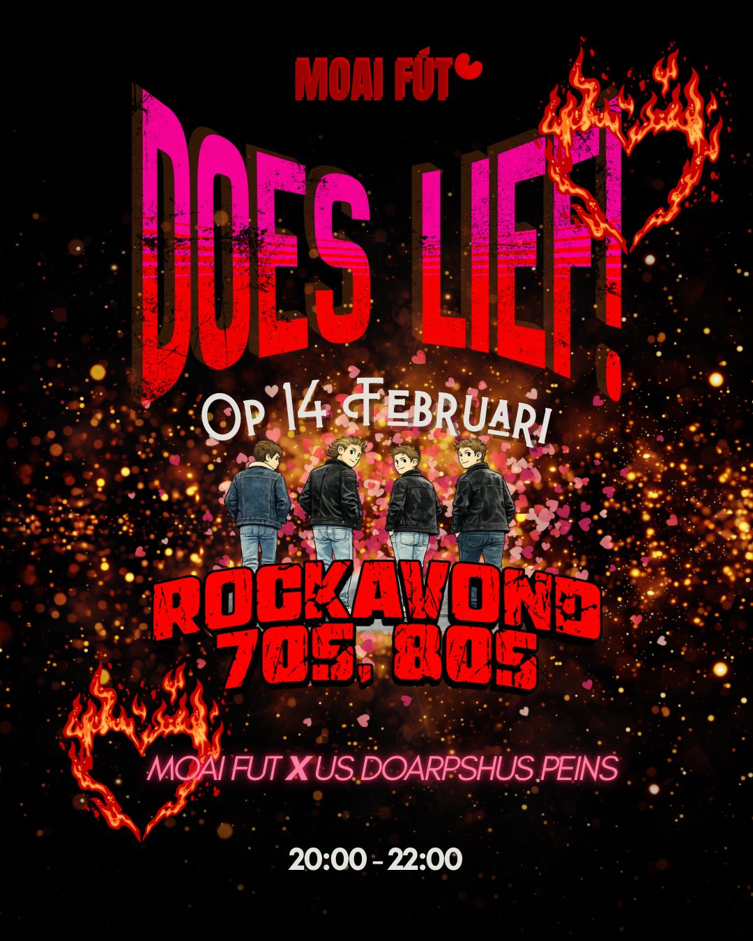 Deze speciale weekafsluiter DOES LIEF is er muziek van Moai Fut! Het wordt een rockavond met muziek uit de jaren 70 en 80!
