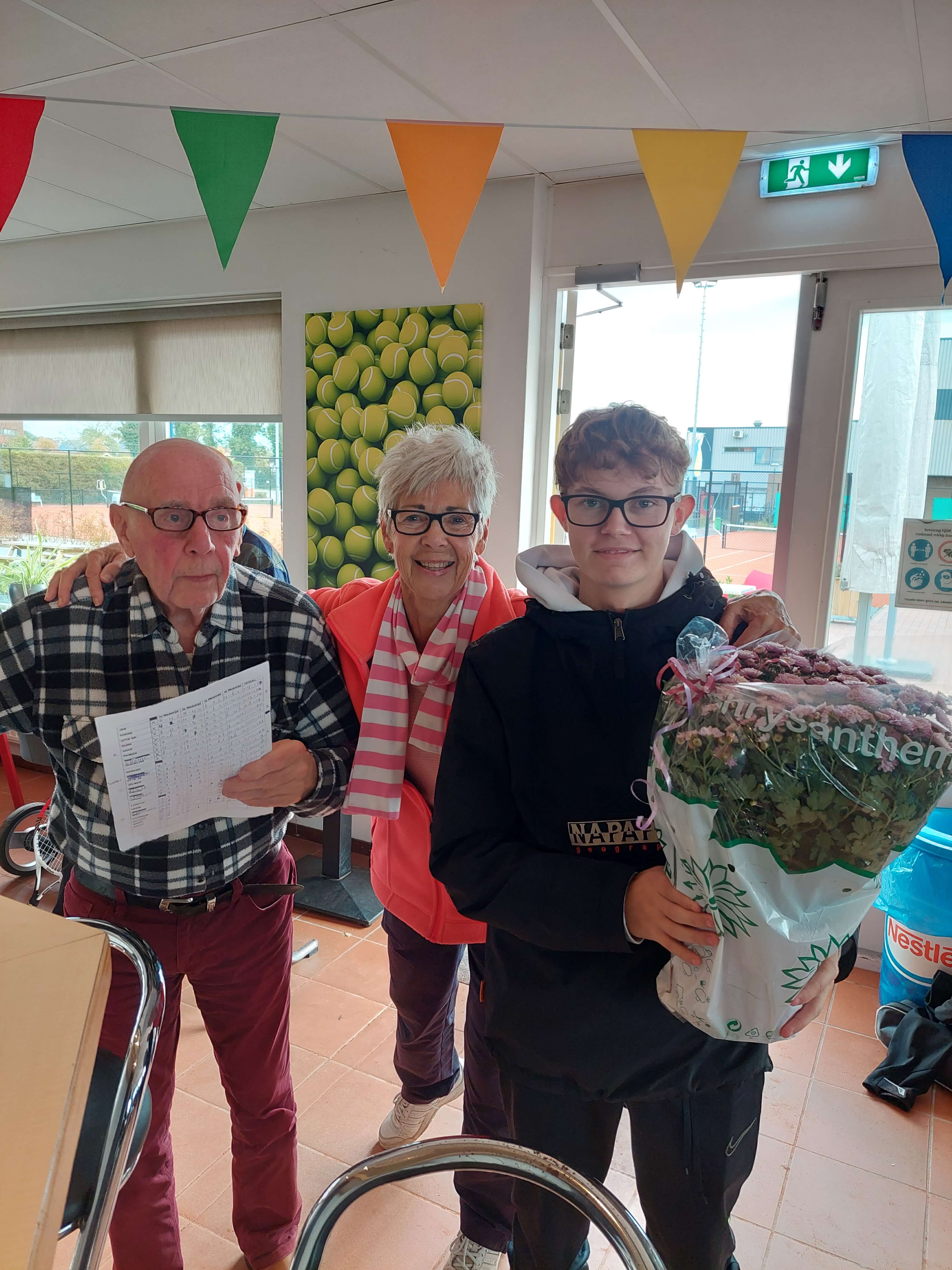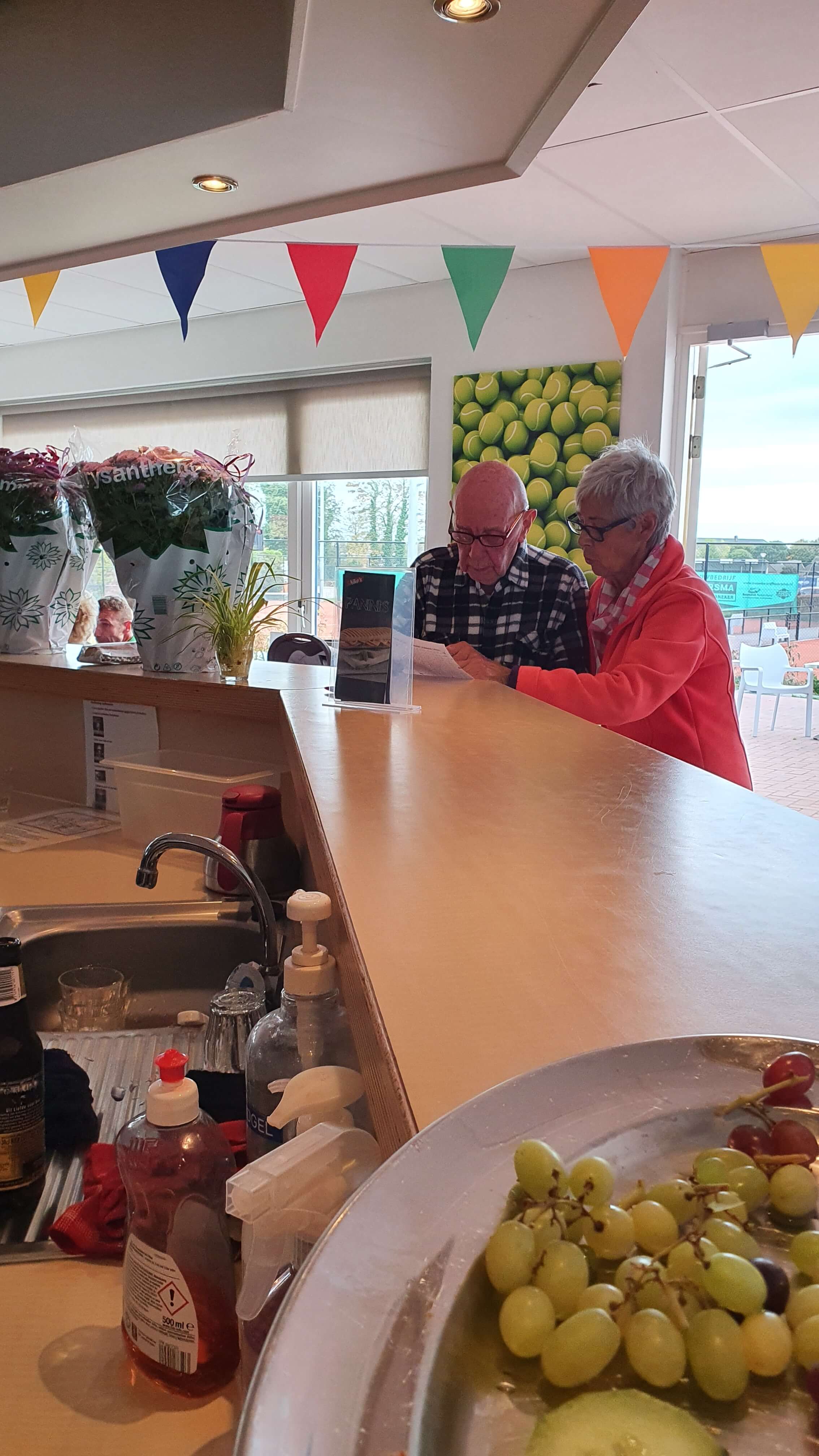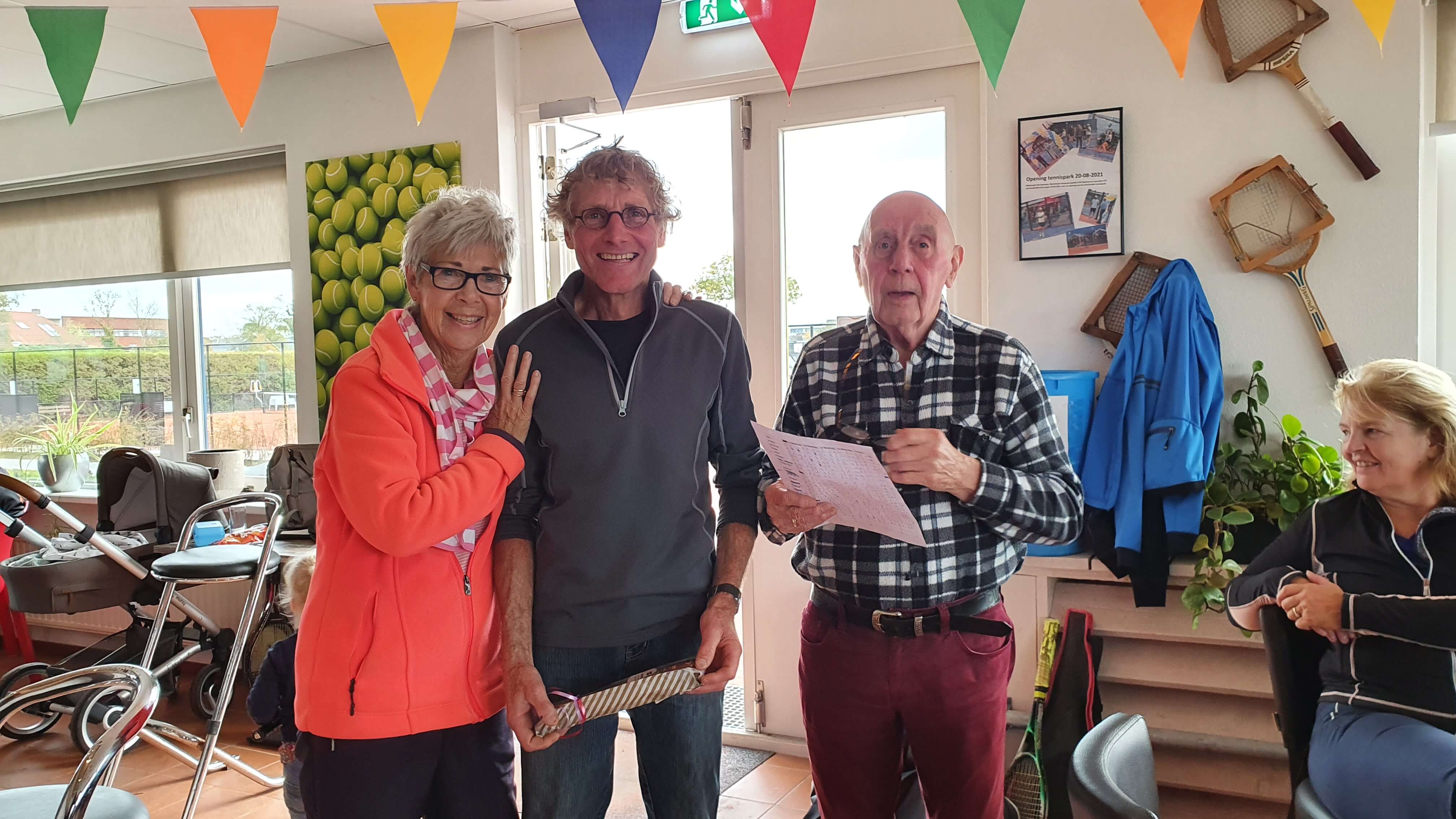 We hebben een totaal van 17 parturen, 5 in de A groep, 6 in de B groep en 6 in de C groep. Maar hier komt al snel weer verandering in als er toch nog iemand vraagt op het laatste moment om mee te doen: Alleen had Niek geen vrouw om mee te kaatsten: "Geen probleem, kom hier maar heen en we gaan even kijken of we wat kunnen regelen". Na wat telefoontjes en app-jes was er helaas zo snel niet een vrouw die beschikbaar was om te kaatsen, tot Martine het veld op komt om bij de familie te kijken. Snel even vragen, en ja hoor ..... de schoenen uit en gaan! Prachtig, het komt uiteindelijk toch altijd weer goed!