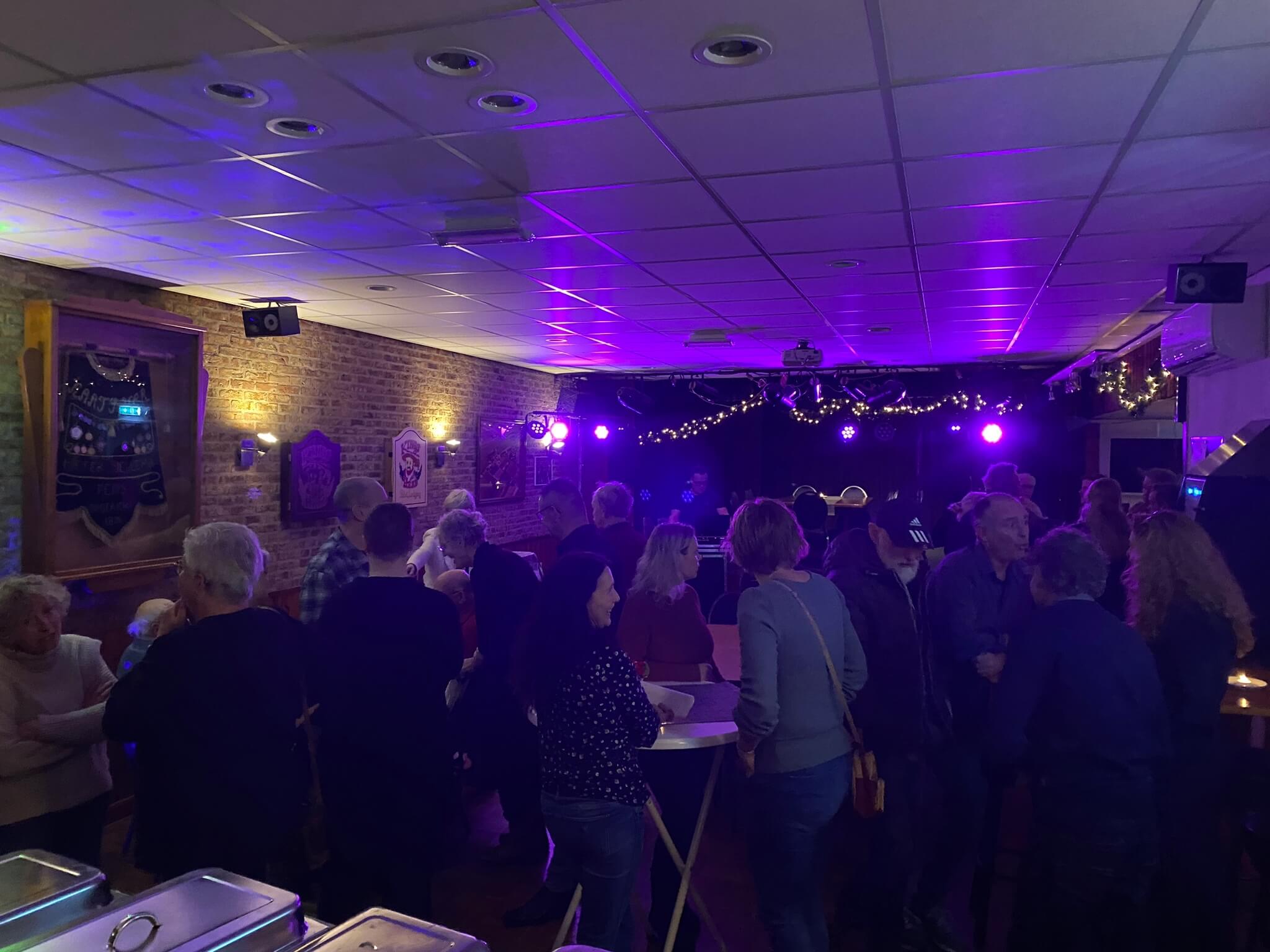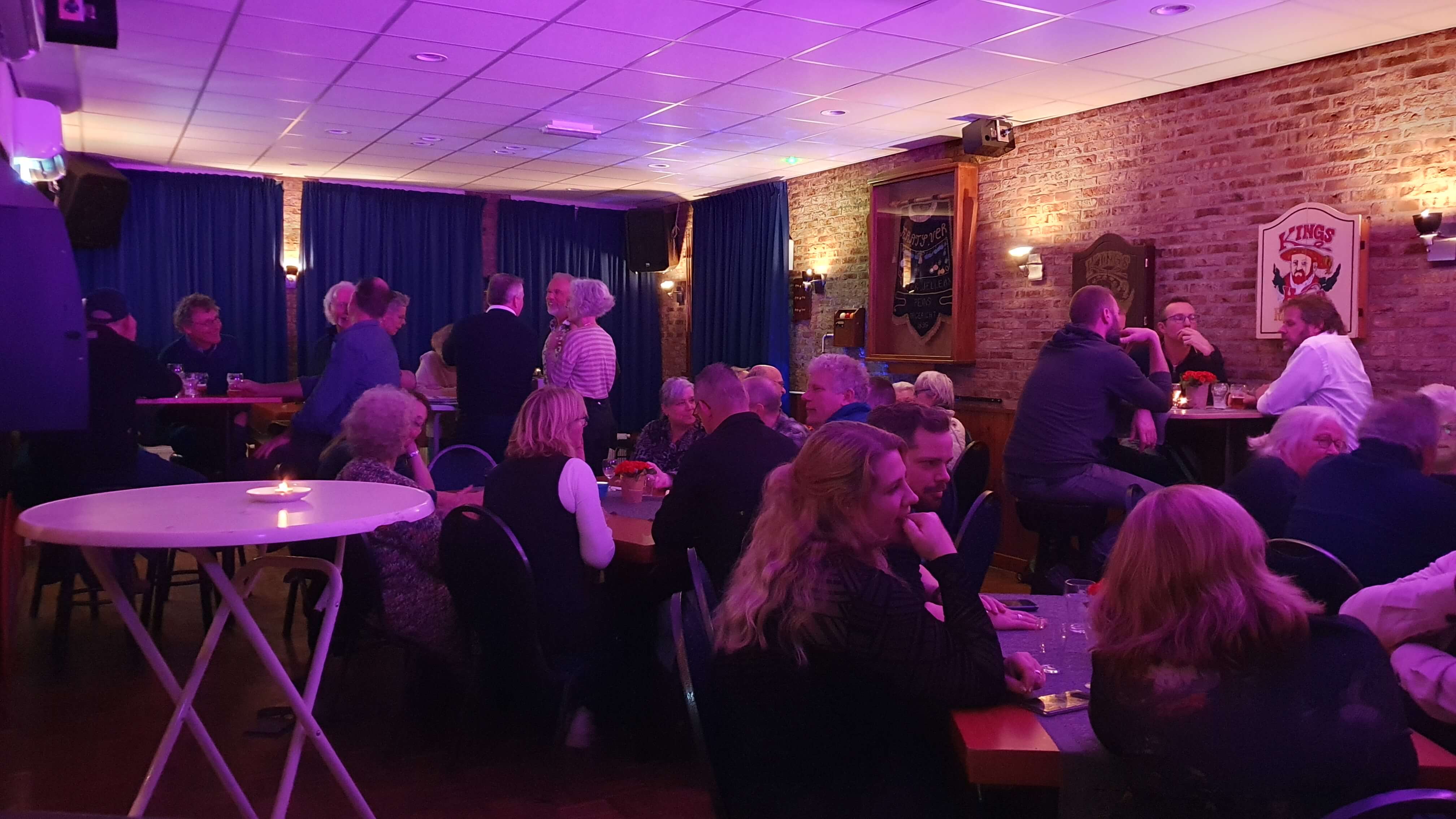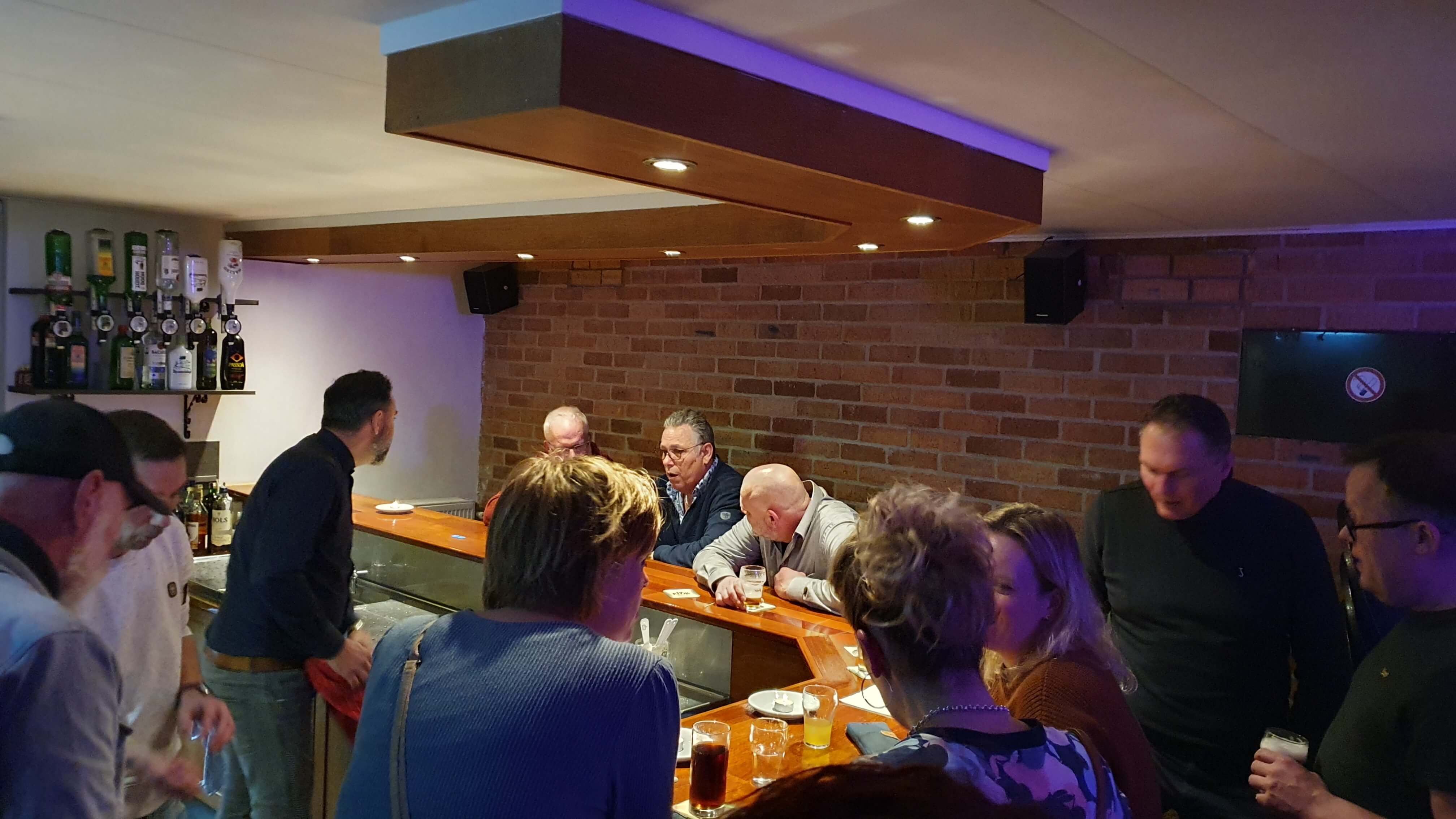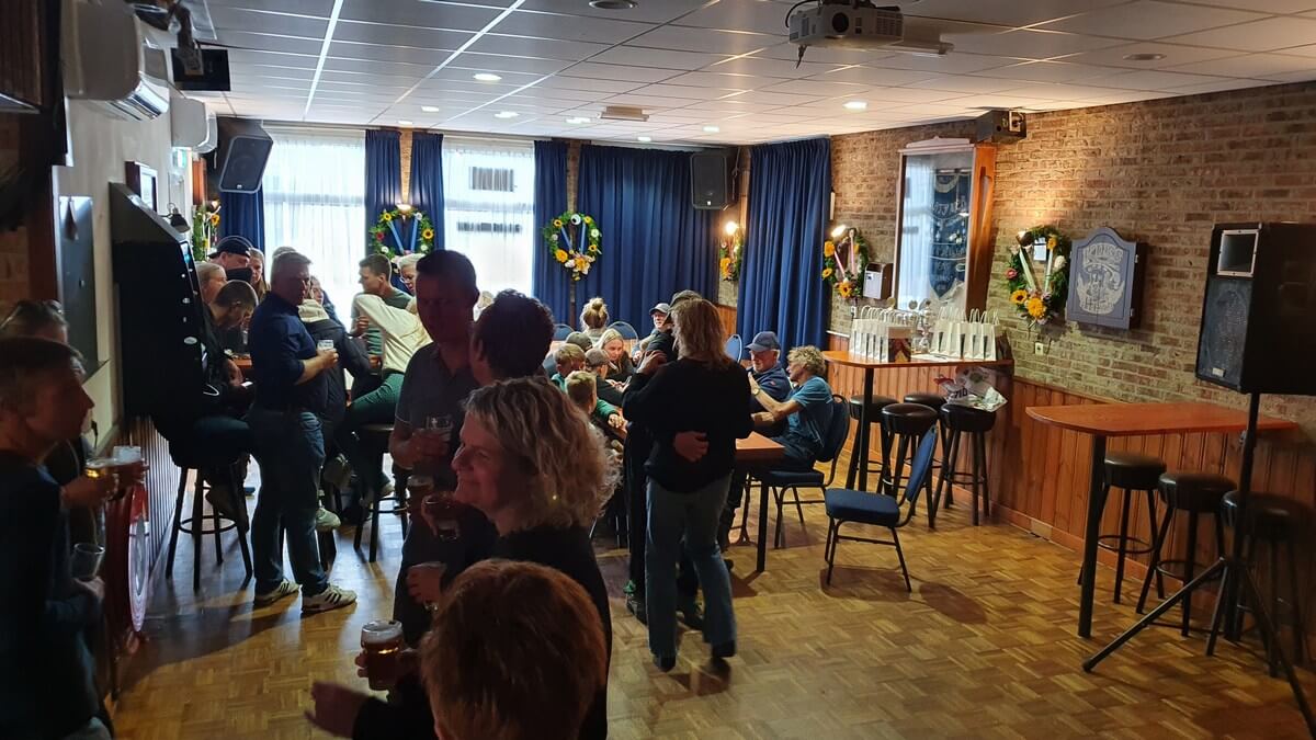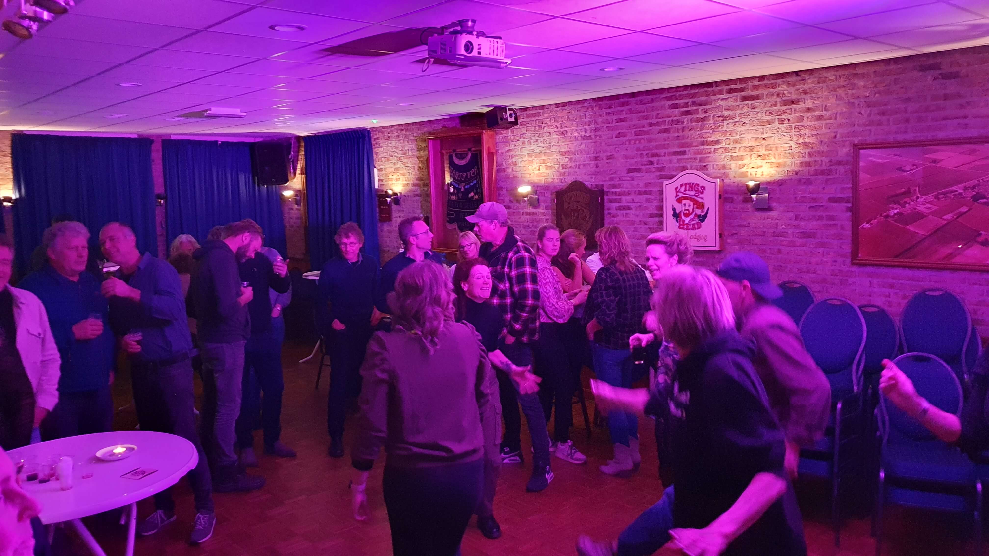 In het dorpshuis is het al snel gezellig druk en worden de eerste drankjes al genuttigd als Sjouke van Kammen druk bezig met het zingen van zijn nummers waarop lekker wordt gedanst.