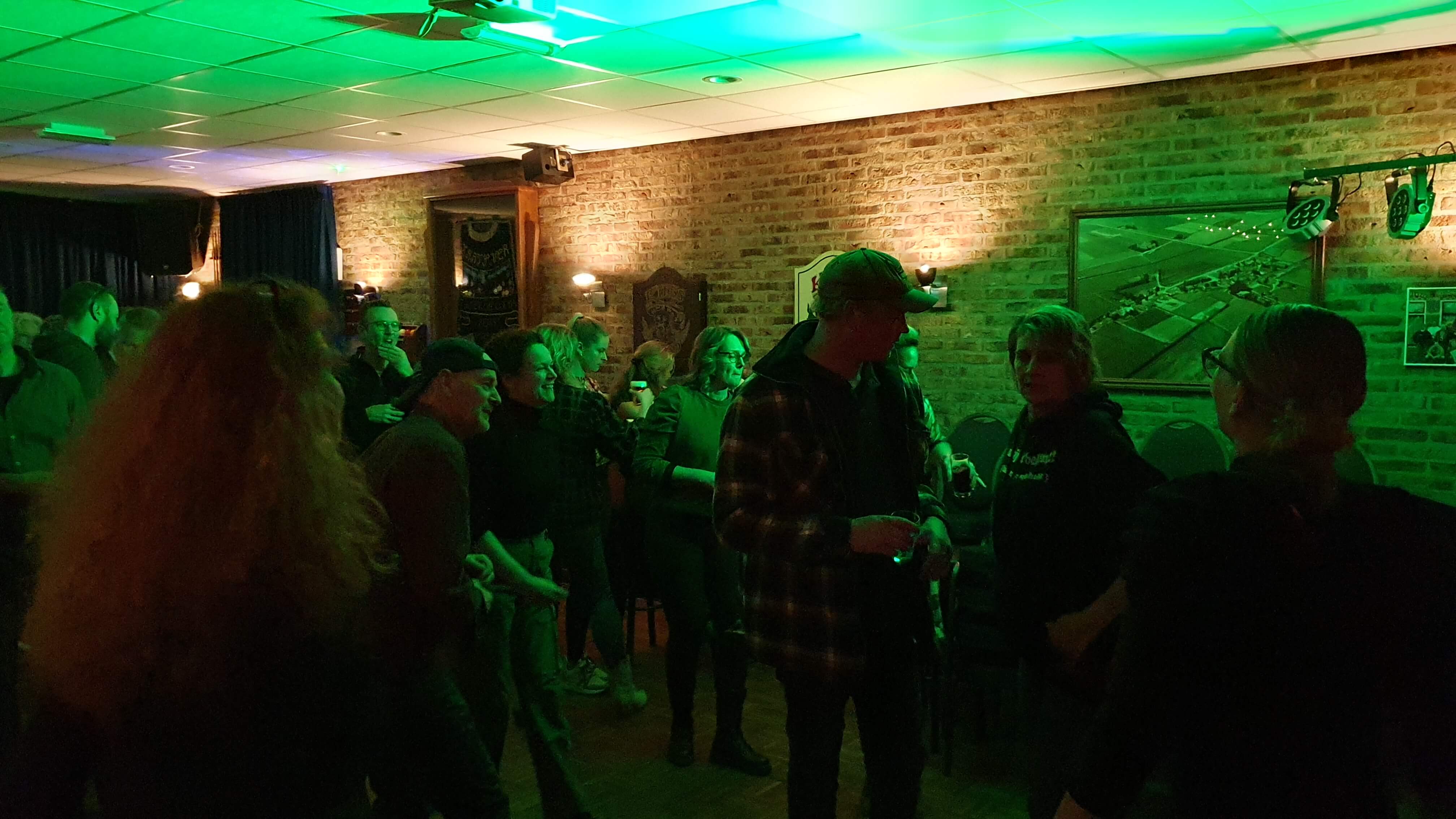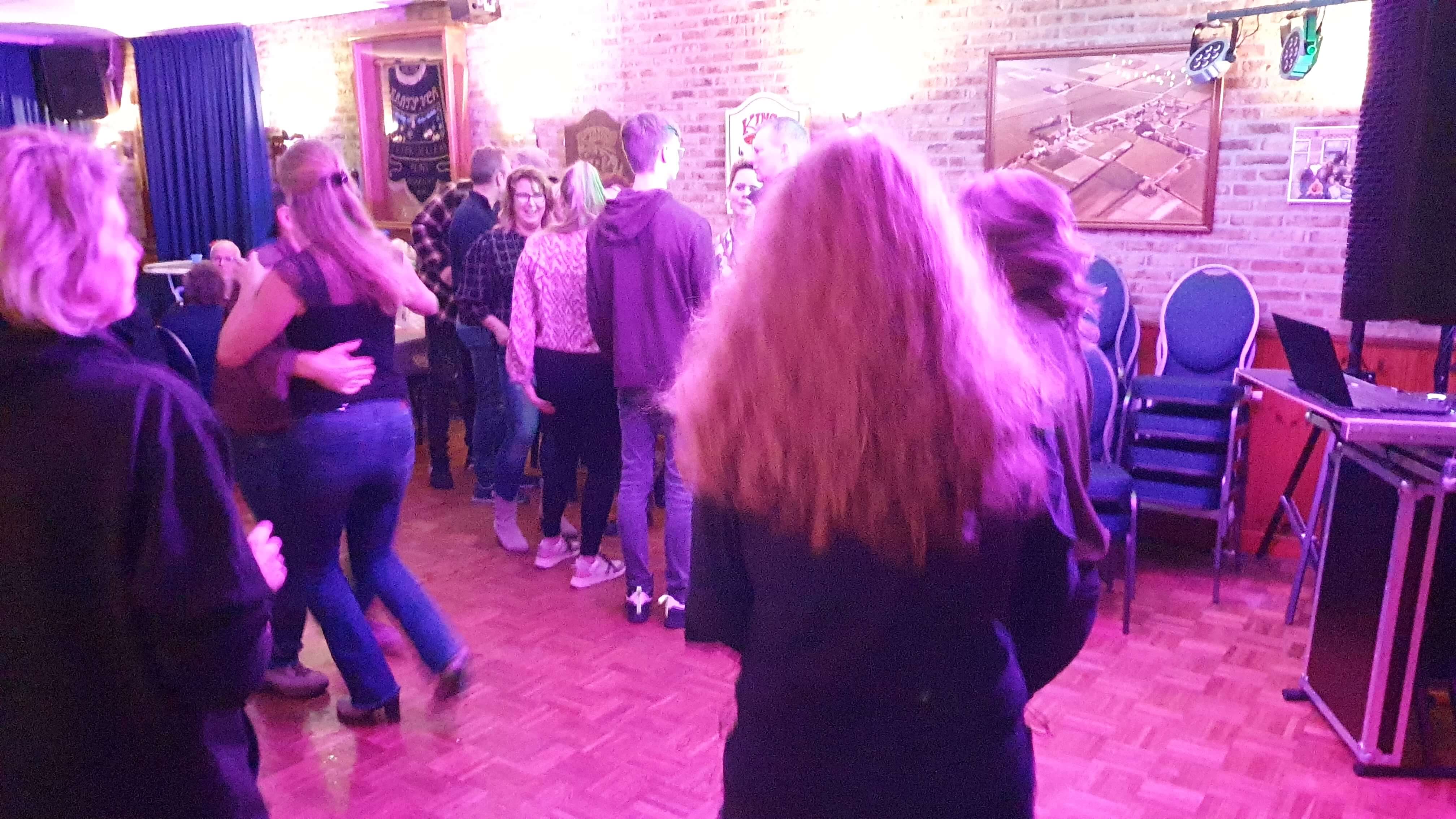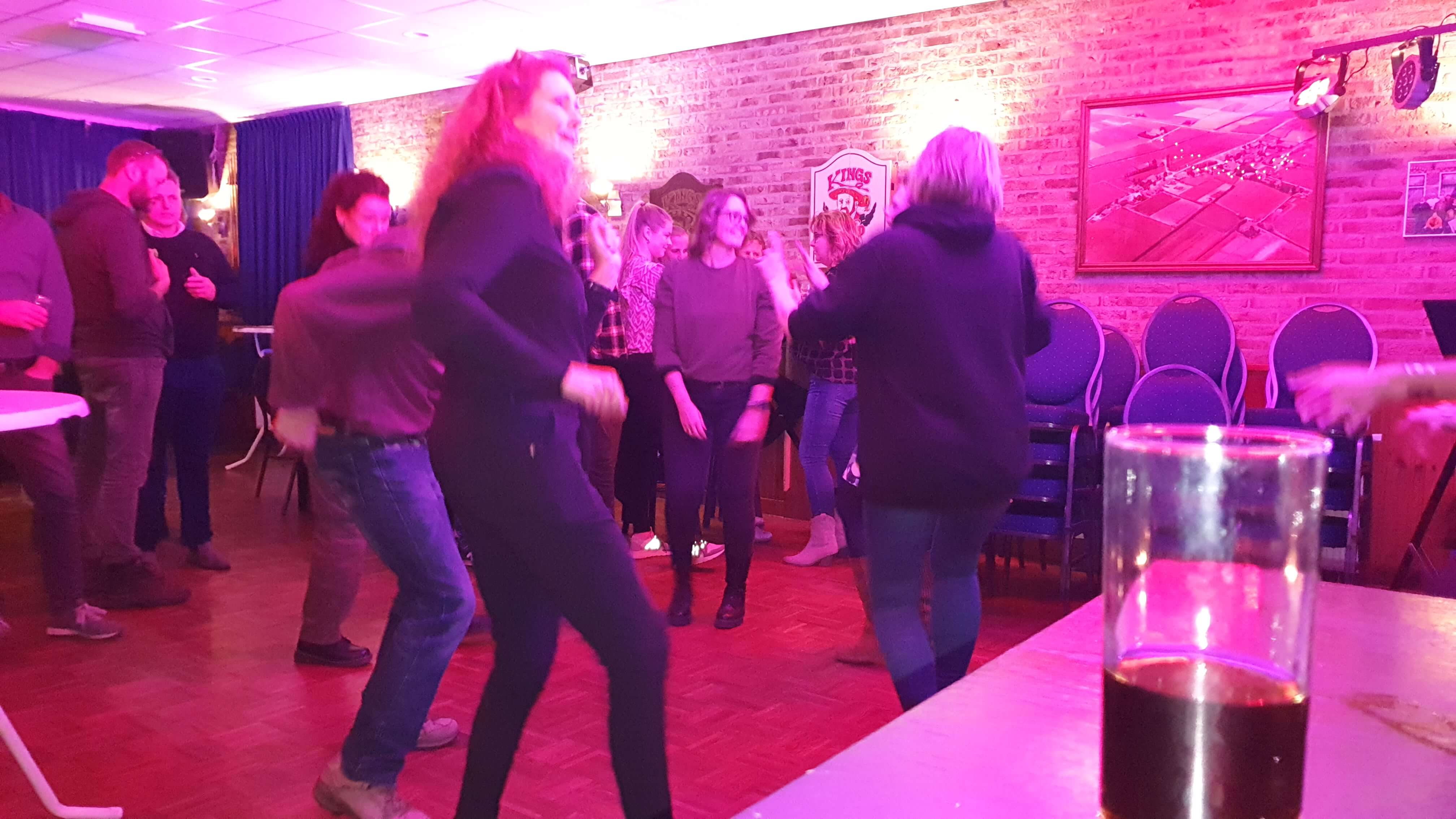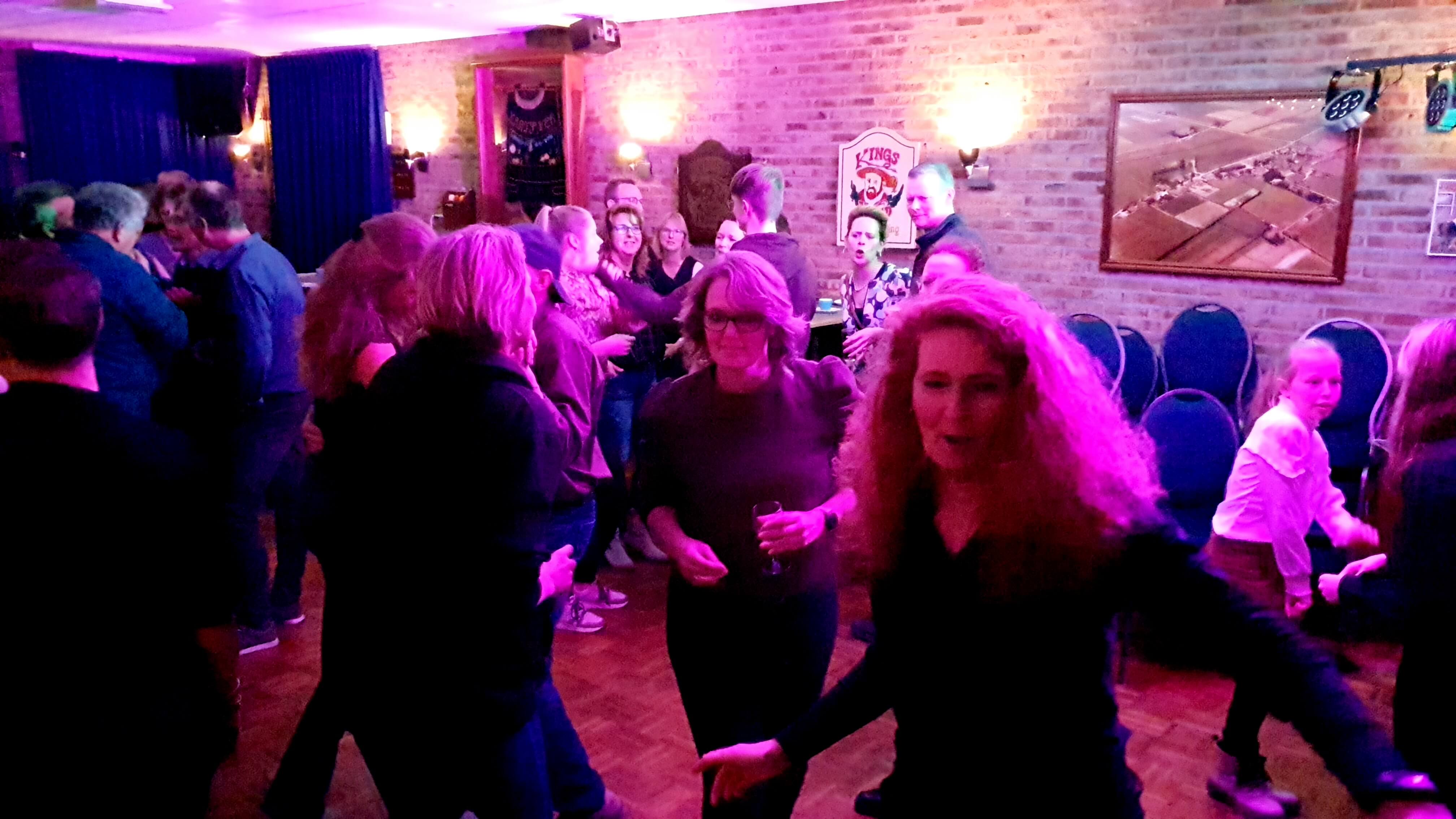 In het dorpshuis is het al snel gezellig druk en worden de eerste drankjes al genuttigd als Sjouke van Kammen druk bezig met het zingen van zijn nummers waarop lekker wordt gedanst.